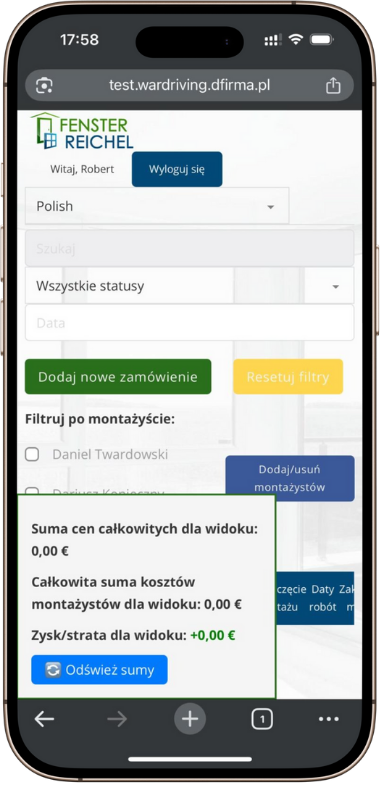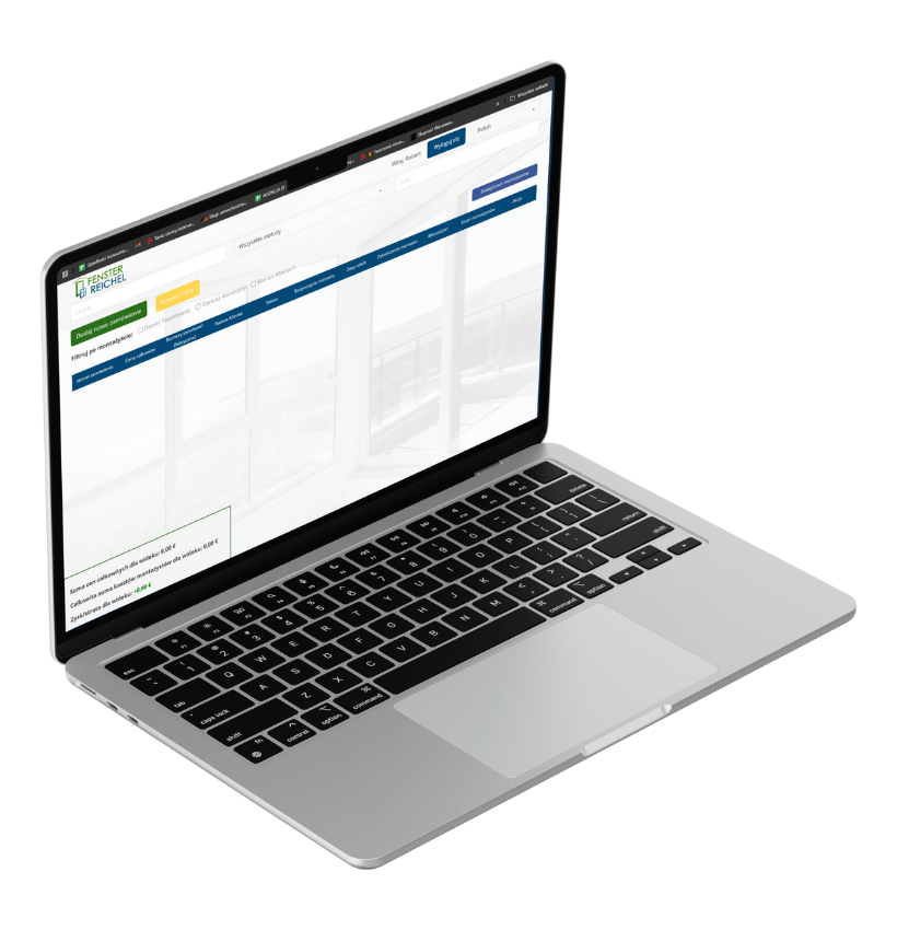 Dla firmy Fenster Reichel stworzyliśmy nowoczesną aplikację webową, która usprawnia codzienne zarządzanie zamówieniami, harmonogramami montażu oraz zespołem pracowników. Naszym celem było przygotowanie intuicyjnego systemu, dzięki któremu firma z branży stolarki okiennej i drzwiowej ma łatwy dostęp do kluczowych danych organizacyjnych i finansowych w jednym miejscu.